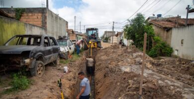 Prefeitura realiza implementação de rede de esgoto em rua de Teixeira de Freitas