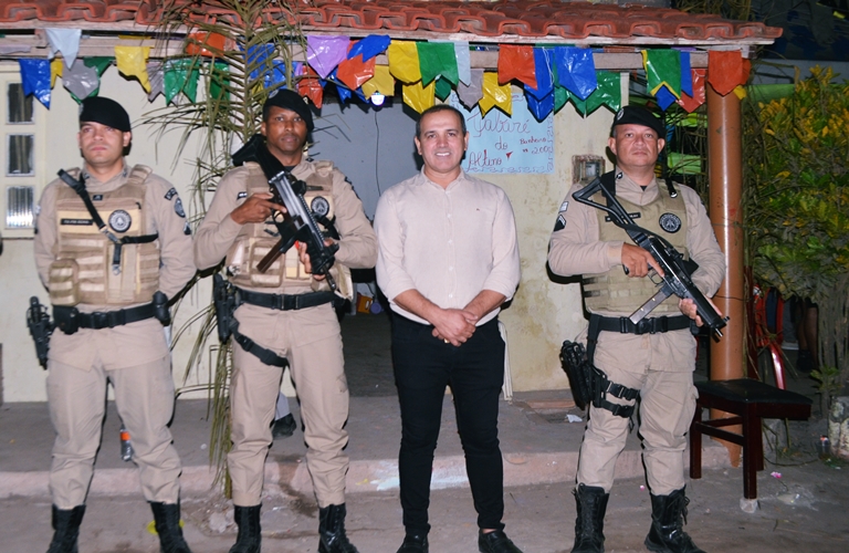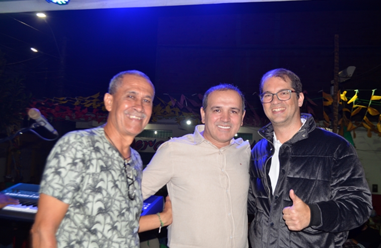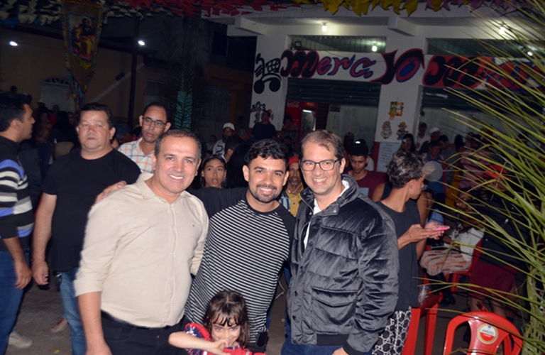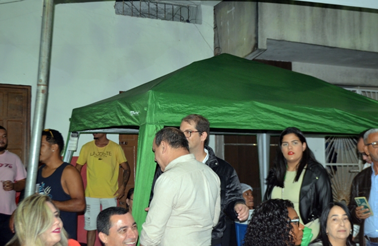 Dr. Marcelo Belitardo, e secretários da prefeitura de Teixeira de Freitas estiveram no evento onde caminhou com o vereador abraçando o povo no entorno da festa e prometeu aos moradores que as ruas do bairro vão ser todas pavimentadas.